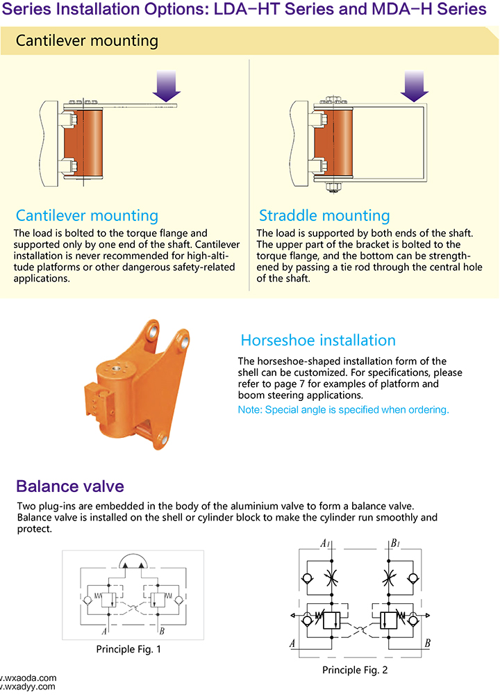 MDA-H系列螺旋擺動油缸和LDA-HT系列螺旋擺動油缸安裝選項: